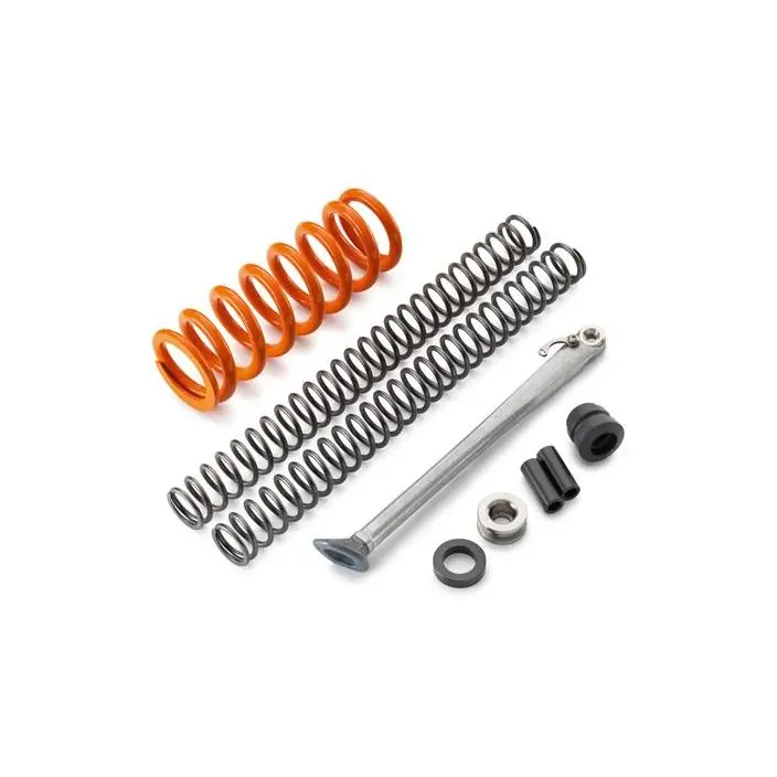 Deze verlaging kit, speciaal ontwikkeld door KTM in samenwerking met WP, is de perfecte compromis tussen maximale chassisprestaties en minimaal mogelijke zithoogte. De componenten die hier gebruikt worden, zijn net als de standaard onderdelen vervaardigd uit de hoogste kwaliteit materialen en zijn, net als de standaard onderdelen, speciaal afgesteld voor offroad gebruik bij intensieve duurtesten. Om de optimale werking van de ophangingskits te garanderen, raden we het gebruik aan met een berijdergewicht tot 70 kg.