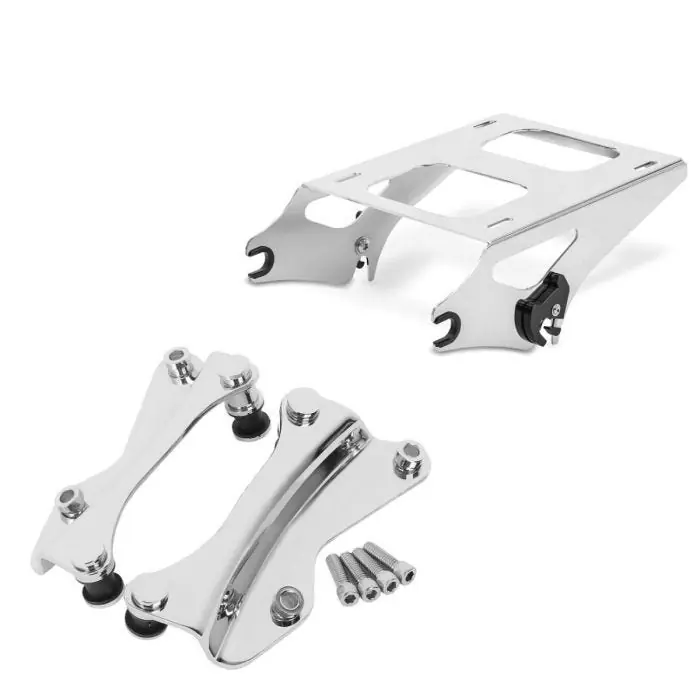 Modern Set: Topkoffer Bagagedrager Rack 2-Up TP passend voor Harley Davidson Touring 14-25 chroom Craftride + 4-Point Docking Hardware Kit passend voor Harley Davidson Touring 2014-23-25 chroom Craftride