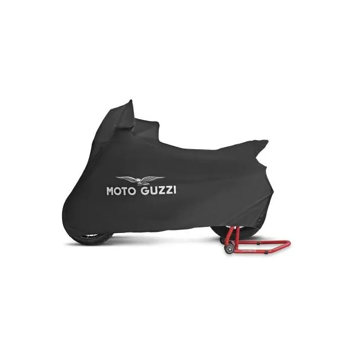Op maat gemaakte binnencover van hoogwaardig stof die perfect aansluit op de contouren van de motor. Elastisch voor een gemakkelijke pasvorm, beschermt de hoes tegen stof, vuil en krassen. In zwarte textuur met Moto Guzzi-logo aan beide zijden, is deze hoes een elegante bescherming voor je motor.