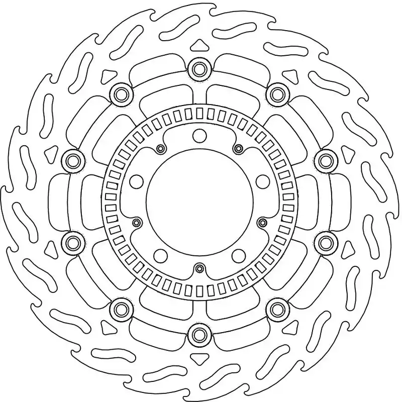 Deze remschijf is uitgerust met een ABS-ring, wat de algehele veiligheid vergroot door een betere controle tijdens het remmen. Het unieke design van de FLAME FLOATING ALU DISC zorgt voor een optimale koeling, wat de slijtage van de remblokken vermindert en de levensduur van de remschijf verlengt.