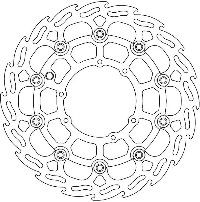 De MOTO MASTER FLAME FLOATING ALU DISC 298 onderscheidt zich door zijn lichtgewicht aluminium constructie en geavanceerd drijvend ontwerp, wat zorgt voor verbeterde remprestaties en minder slijtage.