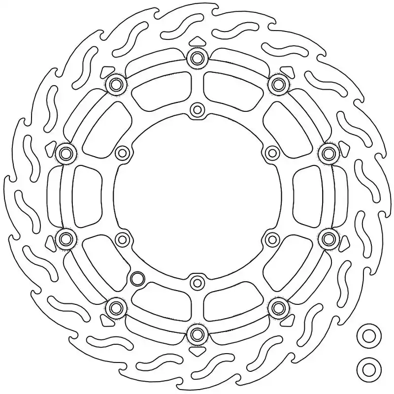 De MOTO MASTER remschijf is ontworpen voor gebruik met een 4-piston caliper, wat zorgt voor een krachtige en efficiënte remwerking. De floating constructie van de schijf biedt niet alleen een verbeterde warmteafvoer, maar ook een betere respons tijdens het remmen.