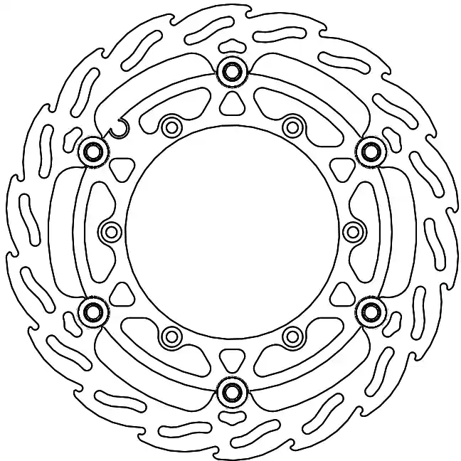 Een van de belangrijkste kenmerken van deze remschijf is het drijvende ontwerp, dat zorgt voor een constante drukverdeling en een efficiënte warmteafvoer. Dit minimaliseert de kans op vervorming tijdens intensief gebruik, waardoor je altijd kunt rekenen op betrouwbare remkracht, ongeacht de omstandigheden.