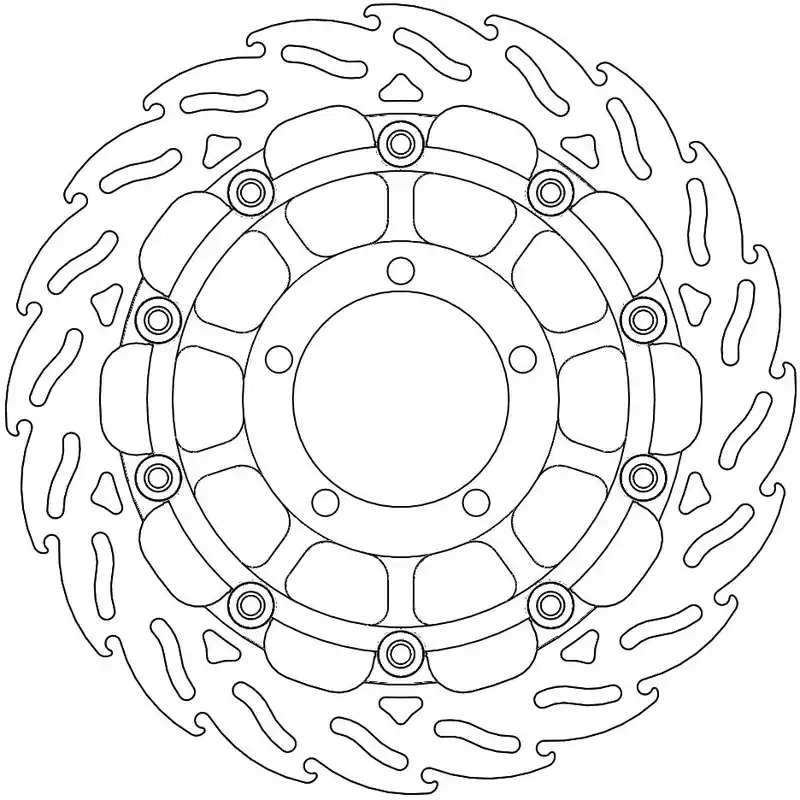 Deze remschijf heeft een FLOATING ALU OFFSET DISC 310 ontwerp, wat zorgt voor een uitstekende warmteafvoer en een lagere kans op vervorming. Dit betekent dat je meer controle hebt over je motor, zelfs onder zware omstandigheden. De constructie van de remschijf is gericht op duurzaamheid en betrouwbaarheid, wat essentieel is voor elke motorliefhebber.