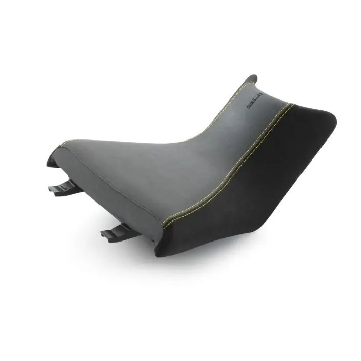 Elegant design met hoogwaardige uitstraling, Perfecte pasvorm met Plug & Play montage. Elegante bekleding met optimaal geplaatste naden om drukpunten te voorkomen. Lager in vergelijking met het standaardzadel. Dankzij de geoptimaliseerde zadelvorm is het grondbereik van de berijder met 10 mm verbeterd.