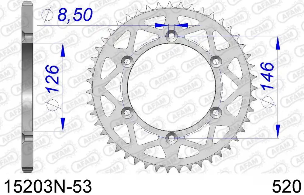 De AFAM REAR ALU 53T, 520 is een hoogwaardige sprocket die speciaal is ontworpen om jouw motorprestaties te optimaliseren. Deze sprocket is gemaakt van duurzaam aluminium, wat zorgt voor een lichtgewicht constructie zonder in te boeten op sterkte. Dankzij de 53 tanden biedt deze sprocket uitstekende acceleratie en snelheid, wat jouw rijervaring verbetert.