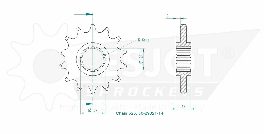 Nieuw ESJOT – FRONT 14T, 525 – Sprockets – Compatibel met Honda