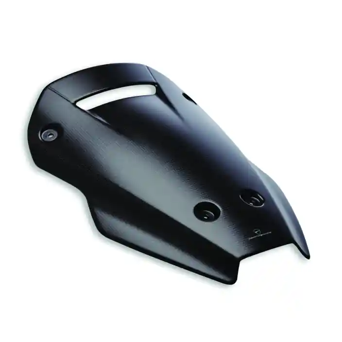 De lichtheid en kracht van de koolstofvezel, gecombineerd met de gedurfde lijnen van dit kostbare accessoire met een uitgesproken sportieve uitstraling, brengen het karakter van de Multistrada naar voren en voegen een vleugje agressiviteit toe.