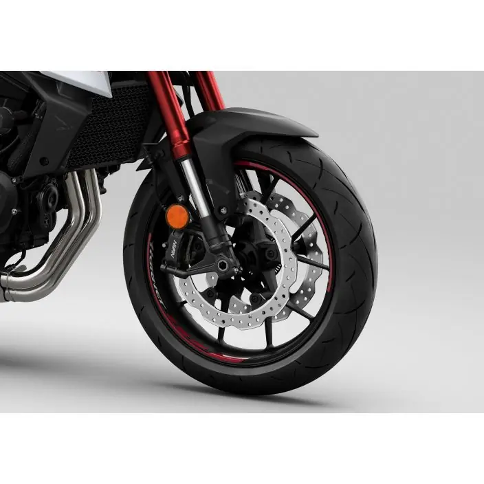 De CB750 wielstickers, voorzien van het Hornet logo, verhogen de sportiviteit van de motorfiets. De kit bevat 2 stickers per wielzijde, dus 2 kits zijn nodig per motorfiets. *Only for Hornet trademark registration area.