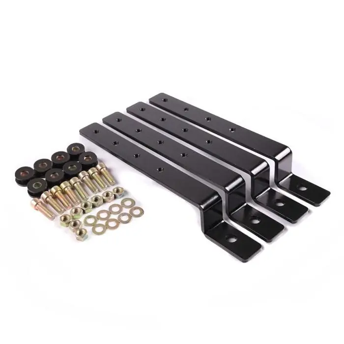 - Set van 4 metalen bevestigingsbeugels, 8 rubber afdichtingsringen, schroeven en sluitringen
