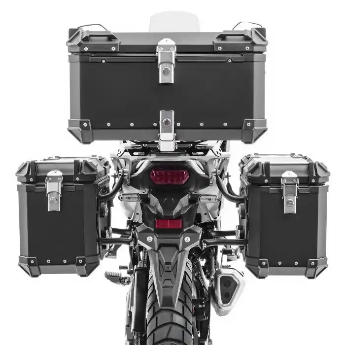 - Bagtecs XW38 motorfiets aluminium bagageset met zijkoffers 2x38L, topkoffer 65L en modelspecifieke dragers