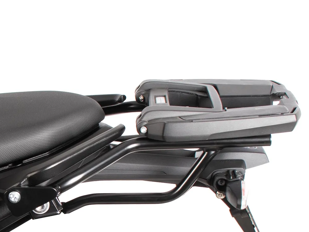 Zeer stabiele drager voor topkoffer van Hepco & Becker vervaardigd uit hoogwaardig aluminium in de kleur zwart met klapbare beugel.