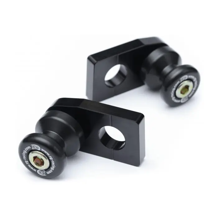 Wanneer er geen schroefdraad in de achterbrug is om een bobbin te monteren kan de R&G “Offset Cotton Reels” gebruikt worden. Zo kan er via de kettingspanner/achteras toch een bobbin op de motor gemonteerd worden en kan de motor dus met een paddockstand veilig en stevig gestald worden. Ook beschermen de bobbins de achterbrug bij een val.