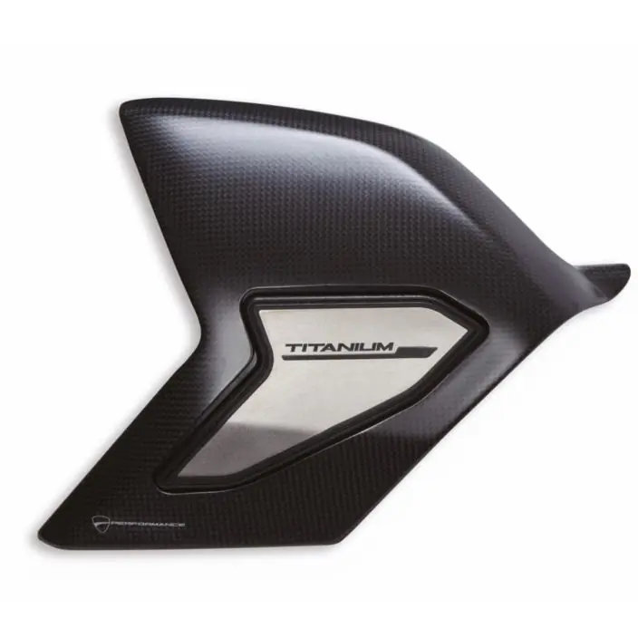 Een fijn accessoire met een uniek ontwerp dat de lichtheid van koolstofvezel combineert met de weerstand van titanium om effectieve bescherming te bieden in geval van uitglijden; het verrijkt ook het uiterlijk van de motor met een element dat de agressieve en duidelijke raceklare lijnen versterkt.