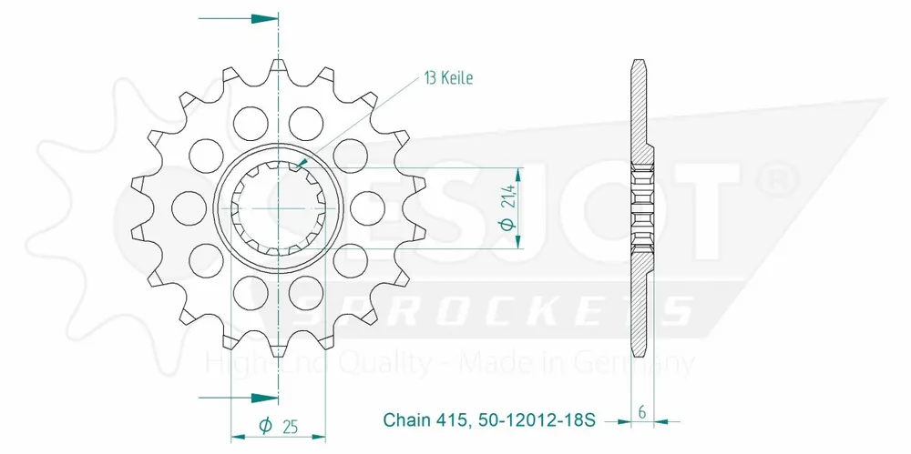 De combinatie van 18 tanden en een diameter van 525 mm zorgt voor een ideale tandwielverhouding, wat bijdraagt aan de prestaties en efficiëntie van je motor.