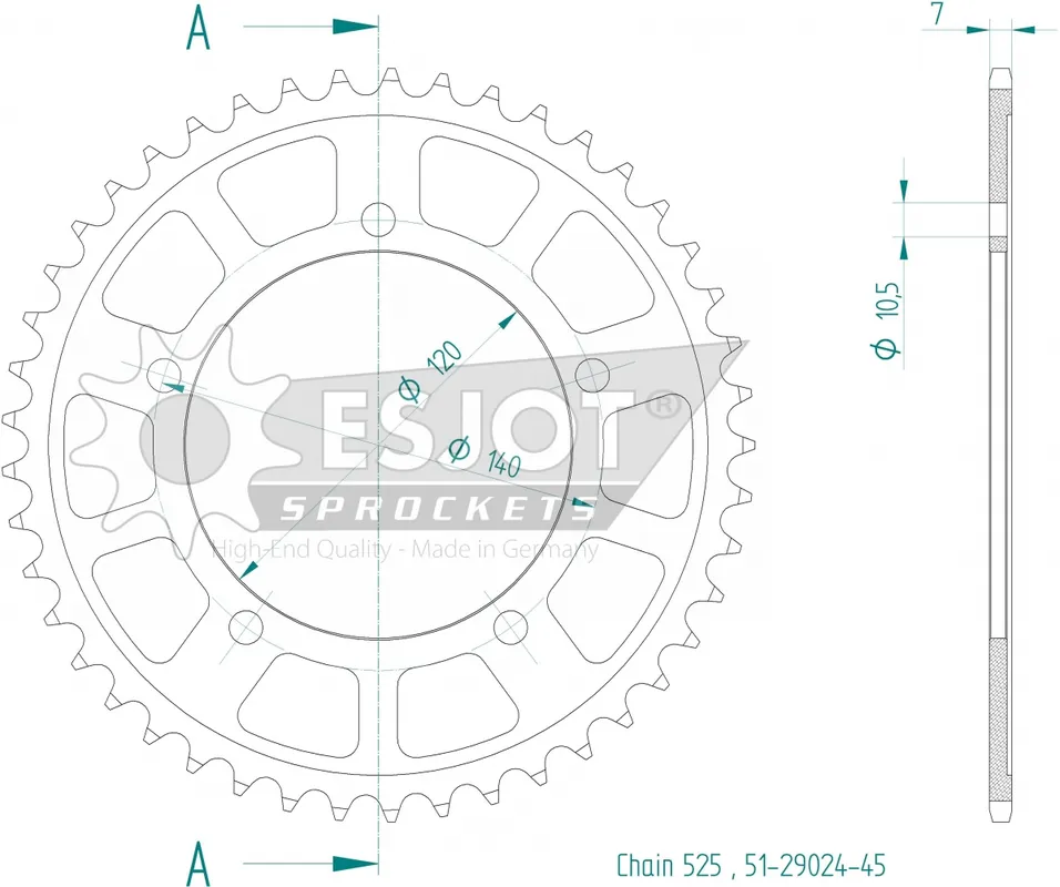 Op = Op ESJOT – REAR ALU 45T, 525 – Sprockets – Lichtgewicht en duurzaam