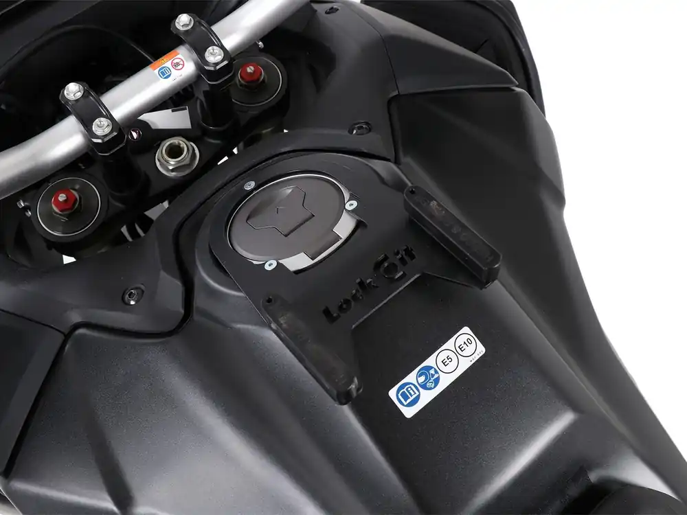 -de Hepco & becker tanktas wordt eenvoudig op de tankring geplaatst en vergrendelt hoorbaar, dankzij een slim mechanisme.