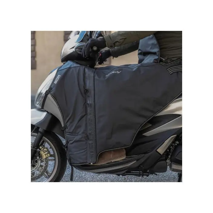 Nieuw concept van high-end beenbedekking om het rijcomfort in alle seizoenen te verbeteren: ontworpen op de vorm van het voertuig, waterbestendig, modulair en gemakkelijk aanpasbaar aan de klimatologische omstandigheden. TPU-afwerking, innovatief systeem met stabiliserende inzetstukken, antidiefstal, behuizing van het verwarmingssysteem en reflecterende afbeelding en logo.