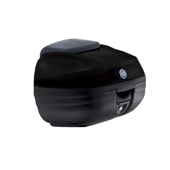 Complete topkoffer set met snel sluit systeem en bevestigingsmateriaal. Kan 1 integraalhelm in worden opgeslagen. Cover past bij de kleur van de motorscooter. Voorzien van een rugsteun in de kleur zwart voor meer passagier comfort.
