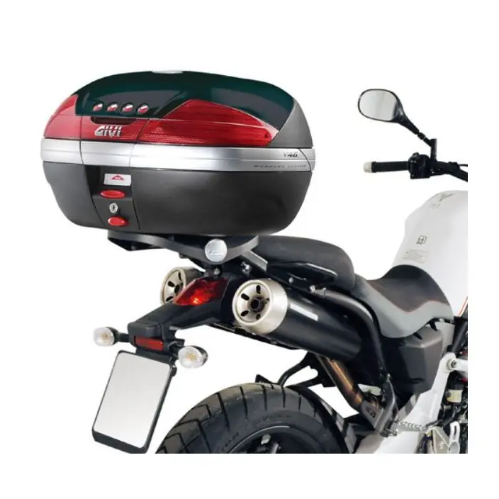Specifiek achter rek voor de MONOKEY of MONOLOCK topkoffers. Kan gecombineerd worden met MONOKEY M5, M7, M8A of M8B platen, of met de MONOLOCK M5M of M6M platen. Wanneer gecombineerd met M8A of M8B platen kan er geen remlichtkit of afstandsbediening meer gebruikt/gemonteerd worden. Het topkofferrek is voorzien van geintegreerde passagier handgrepen. Maximaal draaggewicht van 6 kilo.