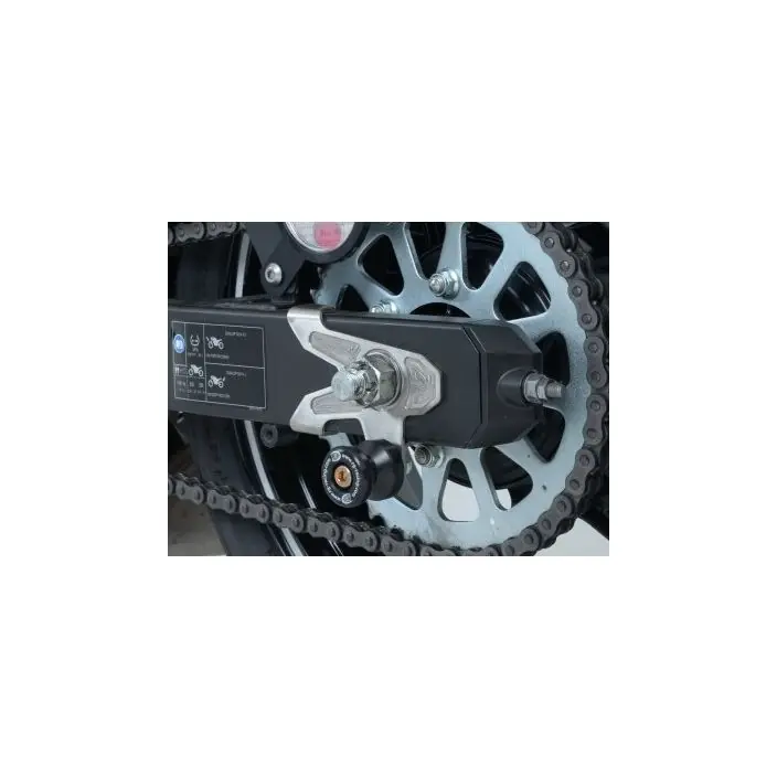 Wanneer er geen schroefdraad in de achterbrug is om een bobbin te monteren kan de R&G “Offset Cotton Reels” gebruikt worden. Zo kan er via de kettingspanner/achteras toch een bobbin op de motor gemonteerd worden en kan de motor dus met een paddockstand veilig en stevig gestald worden. Ook beschermen de bobbins de achterbrug bij een val.