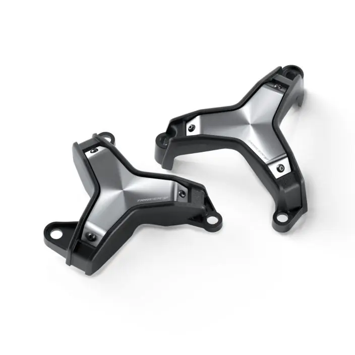 Beperkt schade aan de motor bij een val. De rolbeveiliging kan de schade beperken bij een schuifpartij. Stabiele 3-punts bevestiging, afdekking van geborsteld aluminium.