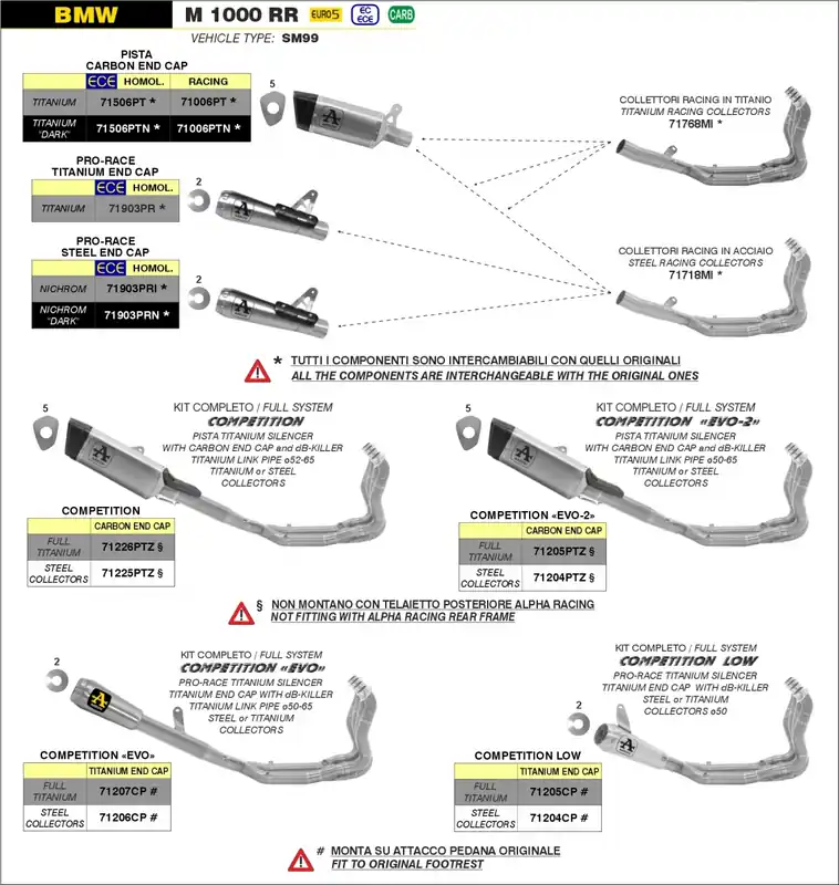 Deze uitlaat is compatibel met diverse modellen van BMW, waaronder de M 1000 RR (m, n, p, r) en S 1000 RR (k, l, m, n, p, r, s). Dit maakt het een veelzijdige keuze voor motorliefhebbers die op zoek zijn naar een betrouwbare en krachtige uitlaat.