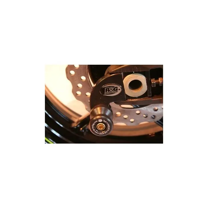 Wanneer er geen schroefdraad in de achterbrug is om een bobbin te monteren kan de R&G “Offset Cotton Reels” gebruikt worden. Zo kan er via de kettingspanner/achteras toch een bobbin op de motor gemonteerd worden en kan de motor dus met een paddockstand veilig en stevig gestald worden. Ook beschermen de bobbins de achterbrug bij een val.
