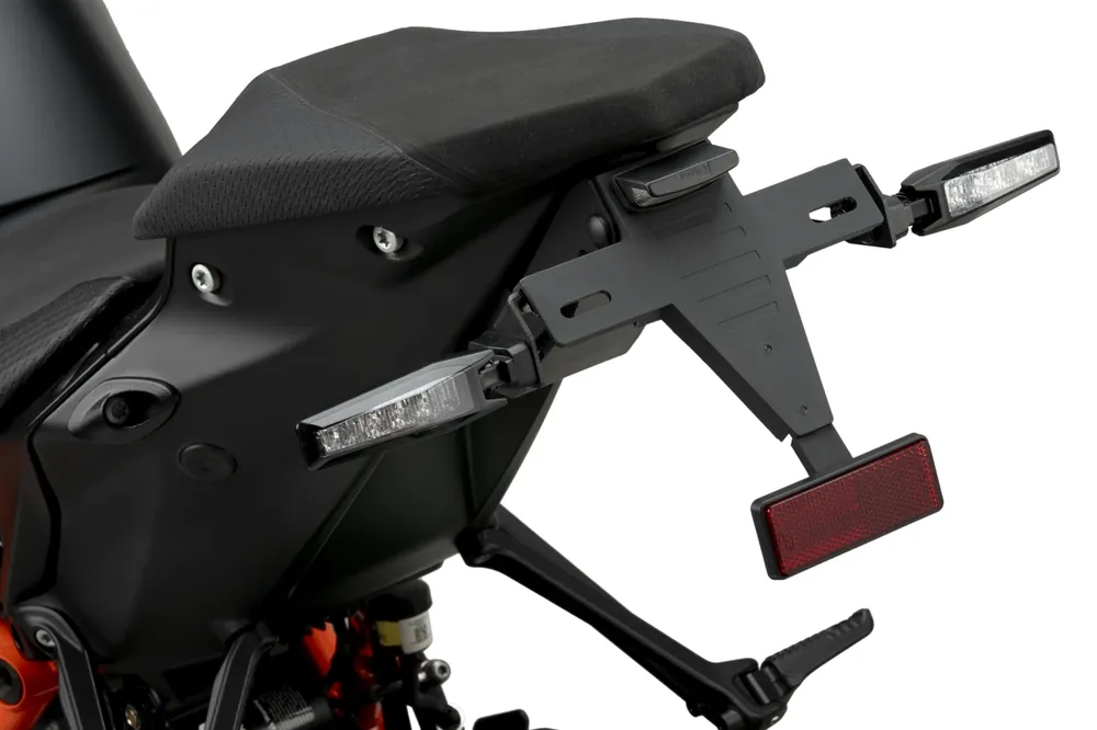 Kentekenplaatverlichting en reflector zijn bij de levering inbegrepen, knipperlichten niet.