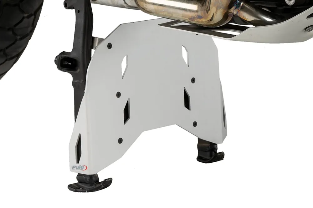 Beschermplaat voor montage op de middenbok. Mooi te combineren met de Puig motorblok bescherming en een solide totaal bescherming van de onderkant.