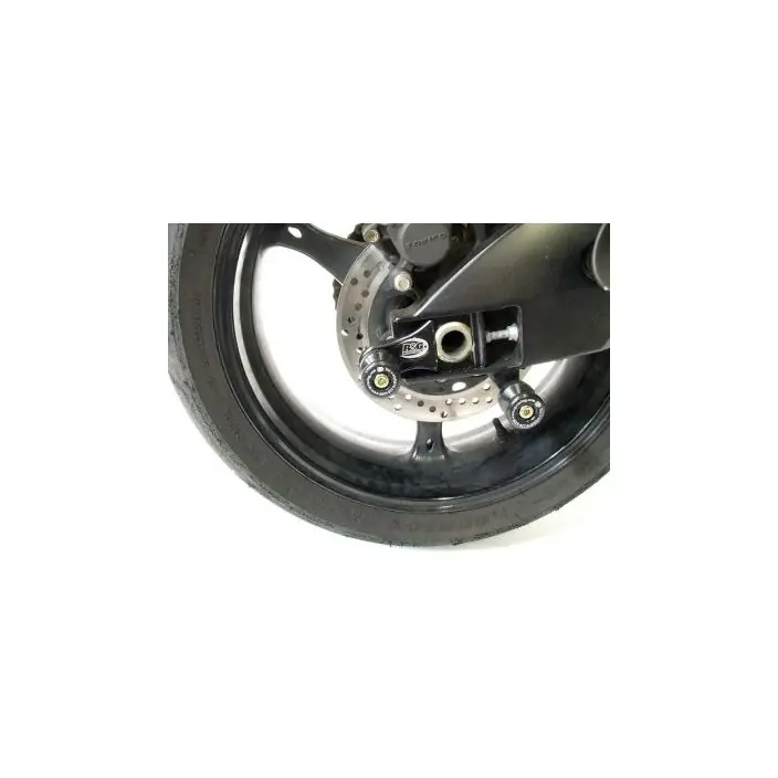 Wanneer er geen schroefdraad in de achterbrug is om een bobbin te monteren kan de R&G “Offset Cotton Reels” gebruikt worden. Zo kan er via de kettingspanner/achteras toch een bobbin op de motor gemonteerd worden en kan de motor dus met een paddockstand veilig en stevig gestald worden. Ook beschermen de bobbins de achterbrug bij een val.