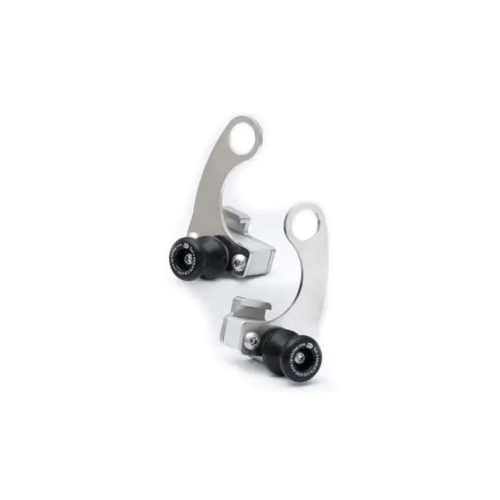 Wanneer er geen schroefdraad in de achterbrug is om een bobbin te monteren kan de R&G “Offset Cotton Reels” gebruikt worden. Zo kan er via de kettingspanner/achteras toch een bobbin op de motor gemonteerd worden en kan de motor dus met een paddockstand veilig en stevig gestald worden. Ook beschermen de bobbins de achterbrug bij een val.