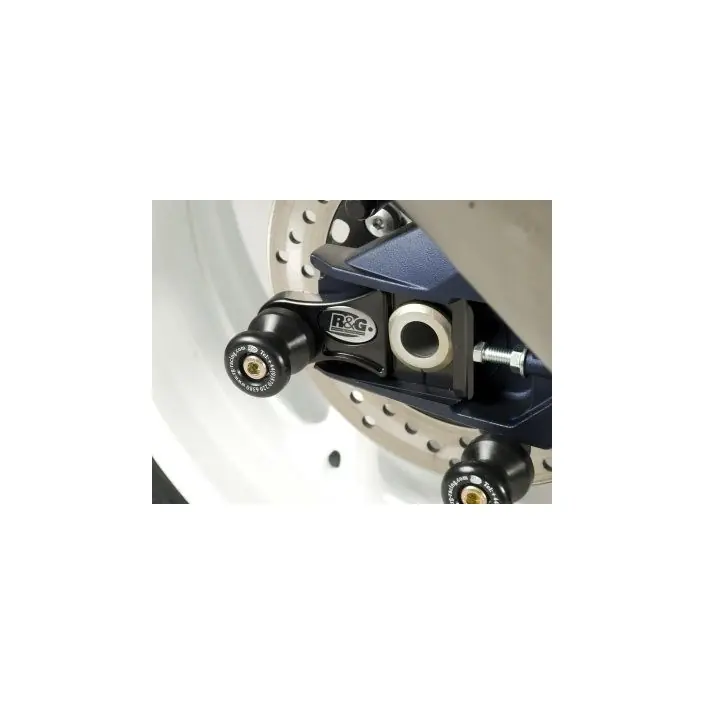 Wanneer er geen schroefdraad in de achterbrug is om een bobbin te monteren kan de R&G “Offset Cotton Reels” gebruikt worden. Zo kan er via de kettingspanner/achteras toch een bobbin op de motor gemonteerd worden en kan de motor dus met een paddockstand veilig en stevig gestald worden. Ook beschermen de bobbins de achterbrug bij een val.