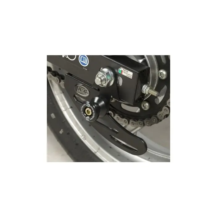 Wanneer er geen schroefdraad in de achterbrug is om een bobbin te monteren kan de R&G “Offset Cotton Reels” gebruikt worden. Zo kan er via de kettingspanner/achteras toch een bobbin op de motor gemonteerd worden en kan de motor dus met een paddockstand veilig en stevig gestald worden. Ook beschermen de bobbins de achterbrug bij een val.
