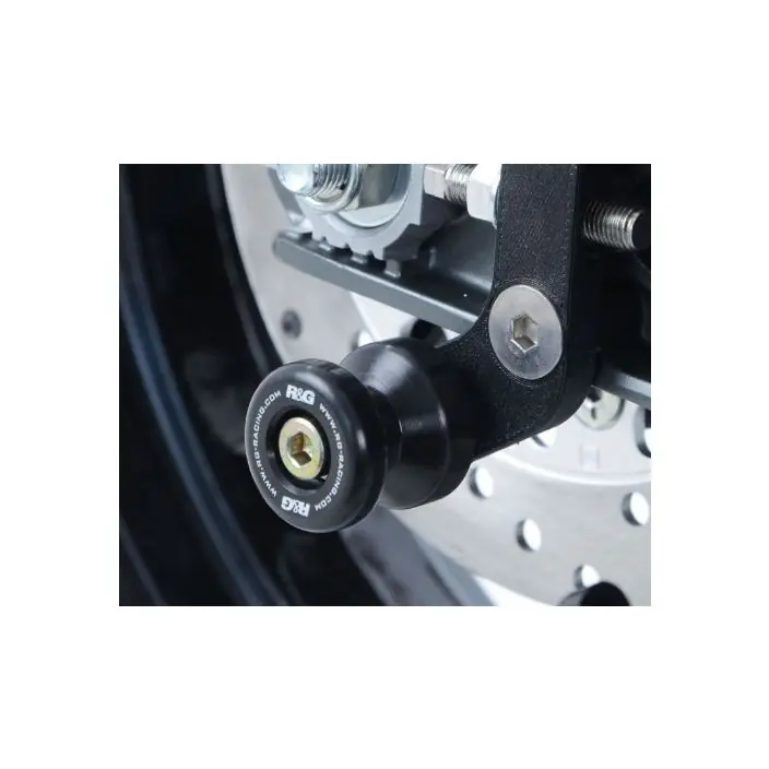 Wanneer er geen schroefdraad in de achterbrug is om een bobbin te monteren kan de R&G “Offset Cotton Reels” gebruikt worden. Zo kan er via de kettingspanner/achteras toch een bobbin op de motor gemonteerd worden en kan de motor dus met een paddockstand veilig en stevig gestald worden. Ook beschermen de bobbins de achterbrug bij een val.