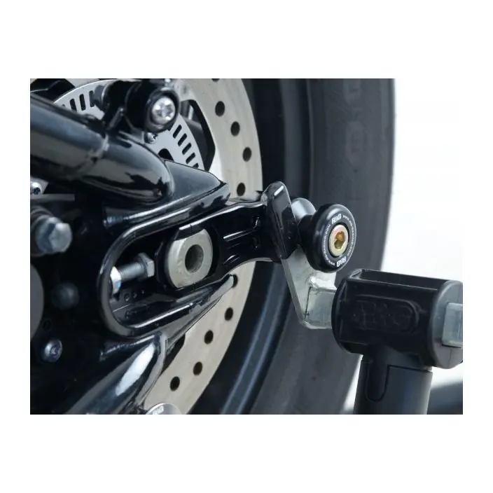 Wanneer er geen schroefdraad in de achterbrug is om een bobbin te monteren kan de R&G “Offset Cotton Reels” gebruikt worden. Zo kan er via de kettingspanner/achteras toch een bobbin op de motor gemonteerd worden en kan de motor dus met een paddockstand veilig en stevig gestald worden. Ook beschermen de bobbins de achterbrug bij een val.