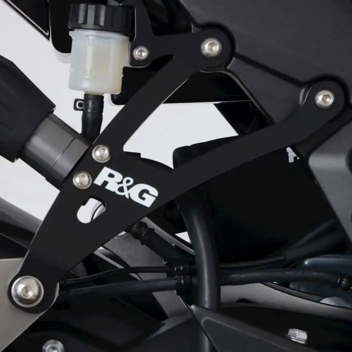 Geef jouw motor een fraaie en sportieve uitstraling met de R&G uitlaatsteun. De uitlaatsteun vervangt de originele passagier voetstep.