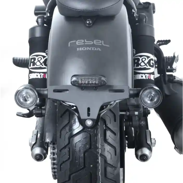Ontworpen om de vaak grote plastic standaard kentekenplaathouder te vervangen en daardoor het design van jouw motor flink te verfraaien. Zowel de originele knipperlichten als kleine (R&G) knipperlichten passen op de R&G kentekenplaathouder. LED kentekenplaatverlichting is wanneer nodig altijd inbegrepen. De R&G kentekenplaathouder wordt ook wel Tail Tidy genoemd.