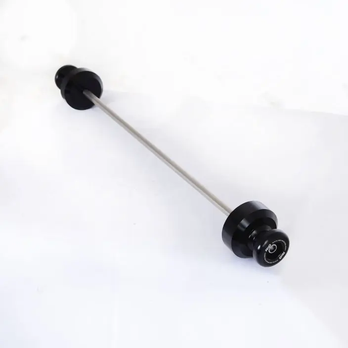 Deze R&G valdoppen worden rechtstreeks door de achterste spindelas van de BMW F 900 R/XR ’20, F900GS ’24 gemonteerd, waardoor de achterste componenten als de achterbrug, de remmen en de aandrijflijn worden beschermd bij een botsing. crashen of vallen, maar functioneren ook als paddockstand-bobbins. Hiermee kan de motorfiets op een paddockstand worden getild voor onderhoud en reiniging.