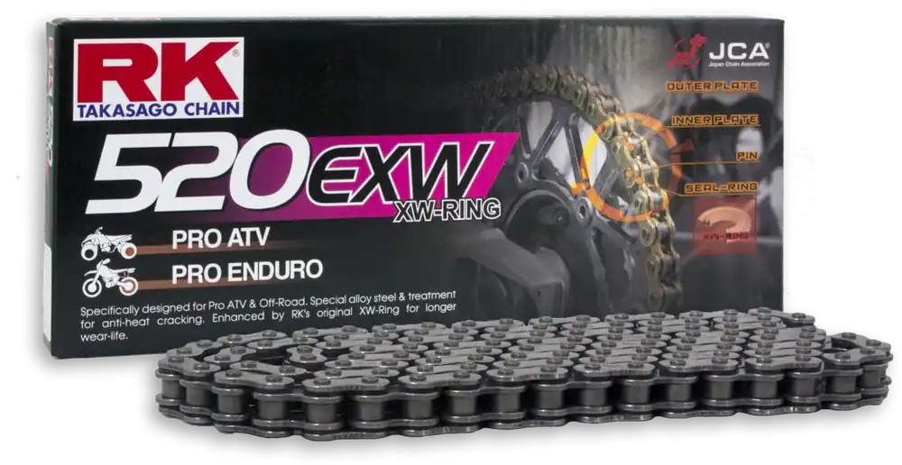 Met de RK 520EXW kies je voor kwaliteit. De super versterkte ketting is niet alleen ontworpen om te presteren, maar ook om jou als motorrijder gemoedsrust te geven. Je kunt met vertrouwen de weg op, wetende dat je motor is uitgerust met een betrouwbare ketting die zijn kracht en stabiliteit behoudt.