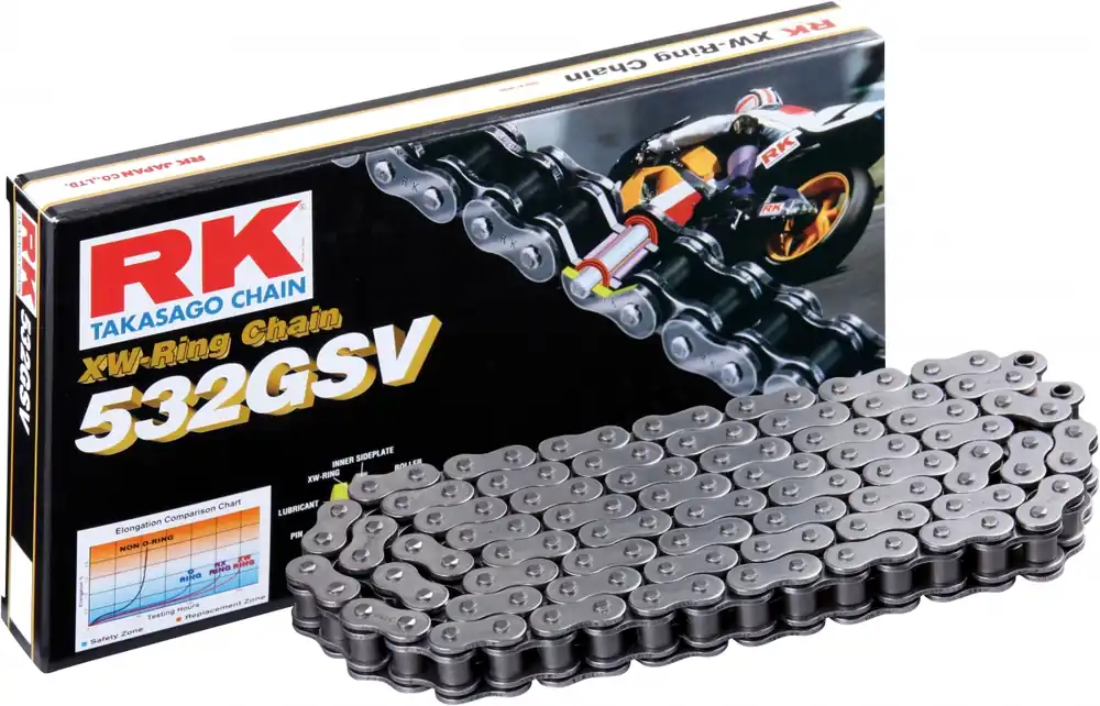 Als je merkt dat je motor minder soepel rijdt of als je slijtage aan de ketting of sprockets ziet, is het verstandig om de RK 532GSV te overwegen als vervanging.