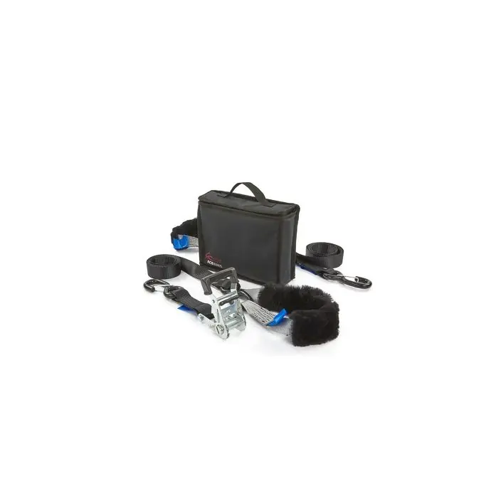 De ratelriem zorgt voor een veilige en betrouwbare grip bij het vervoeren van zware motorfietsen. De met rubber beklede haken en de kunstmatige schapenwollen hoes beschermen de motorfiets tegen schade en de fiets kan zonder risico worden vervoerd. Met een laadvermogen van 900 daN en een breedte van 35 mm is de motorriem uiterst stabiel en biedt een veilige positie tijdens transport, vooral voor zware fietsen. De spanbanden van 2,5 kg kunnen in een paar simpele stappen aan de fiets worden bevestigd en stevig en strak worden vastgezet met behulp van de gegalvaniseerde ratels. De ratelriem voor het transporteren van zware motoren leveren wij in een praktische opbergtas, zodat de riem altijd bij de hand is. Dankzij de robuuste en praktische sluitclips is het vastzetten van de motorfiets heel eenvoudig en handig.