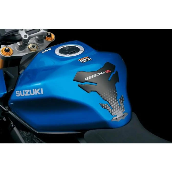 Zwart met grijze stippen, de tankpad heeft een horizontaal GSX-S logo en beschermt je tank tegen krassen van je jas of rits.