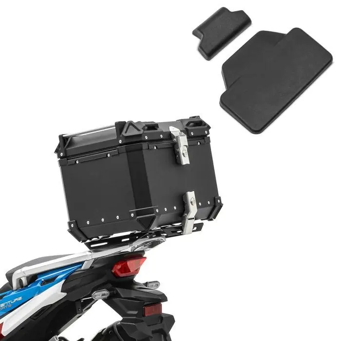 Leveringsomvang: 1x aluminium topkoffer, sleutel, topkofferdrager en bevestigingsmateriaal, 1x rugkussen