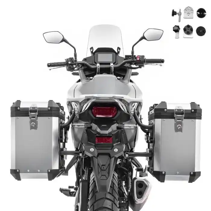 - Set 2x Bagtecs XW38 motorfiets aluminium koffers met elk 38 liter volume en adapters voor kofferdragers