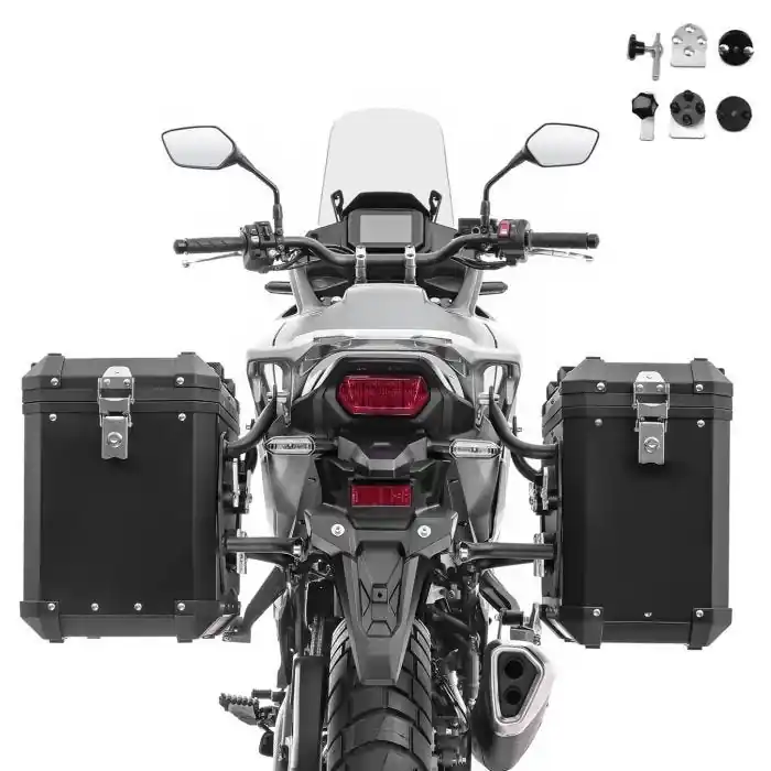 Set Bagtecs XW38-48 motorfiets aluminium koffers met volume 38 / 48 liter en adapters voor kofferdragers