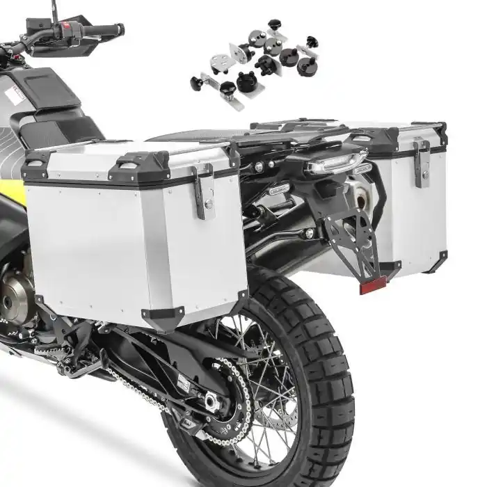 - Leveringsomvang: 2x aluminium zijkoffer (monteerbaar rechts en links), 4x sleutels, Adapterkit