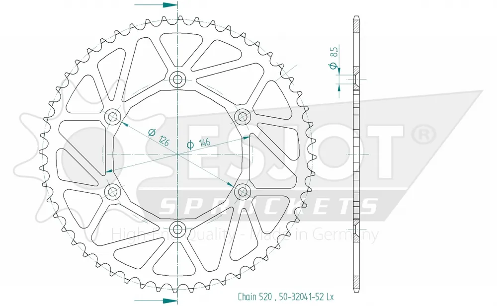 Shop Nu ESJOT – REAR STEEL 52T, 520 – Sprockets – ULTRALIGHT BLACK