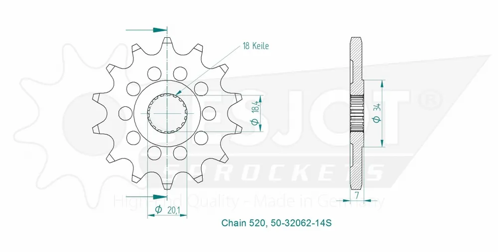 De voordelen van de ESJOT FRONT 14T, LIGHT, 520 zijn onder andere een verbeterde acceleratie, duurzaamheid en een optimale pasvorm voor jouw motor.