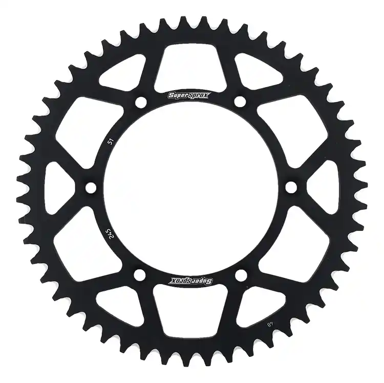 De SUPERSPROX REAR ALU 51T is een hoogwaardige achtertandwiel, speciaal ontworpen om jouw rijervaring te verbeteren. Dit sprocket is vervaardigd van lichtgewicht aluminium en heeft een elegante zwarte afwerking. Met een tandverhouding van 51 tanden, biedt dit onderdeel een uitstekende kracht- en acceleratiebalans voor jouw motor.